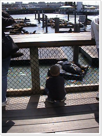 Nicola is taking picture by himself from teh Sea Lions